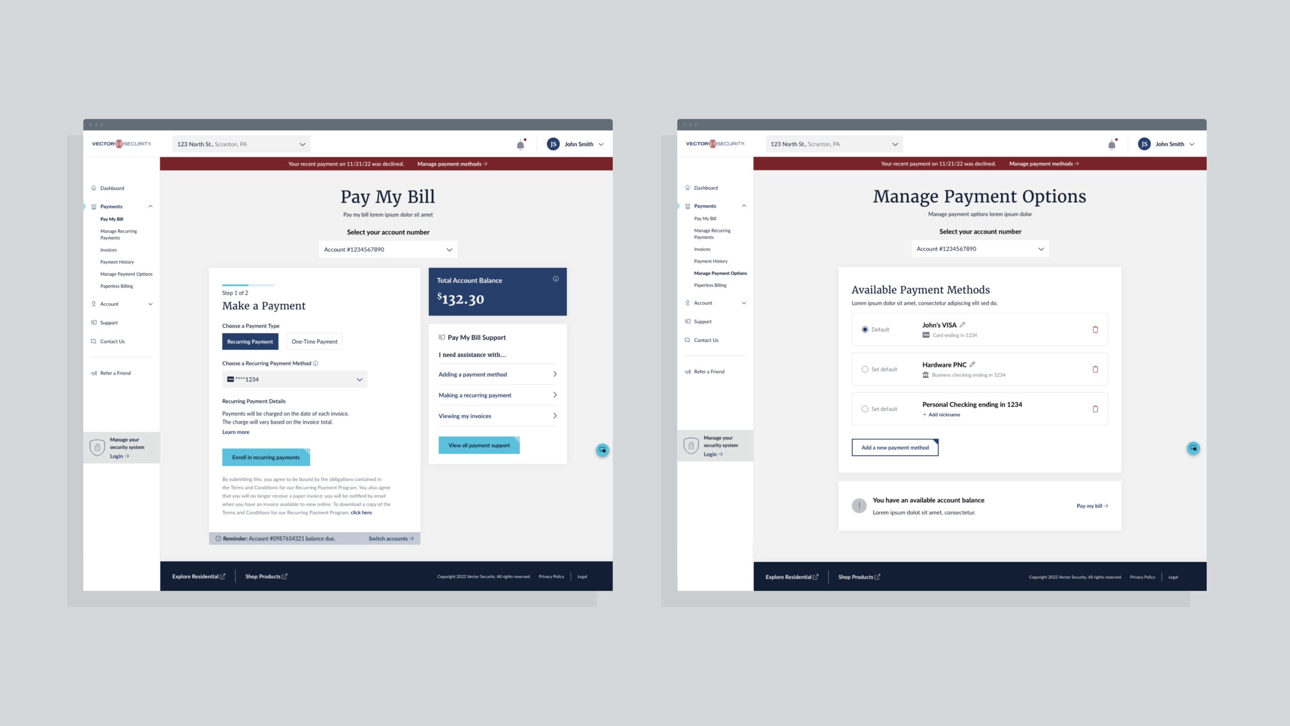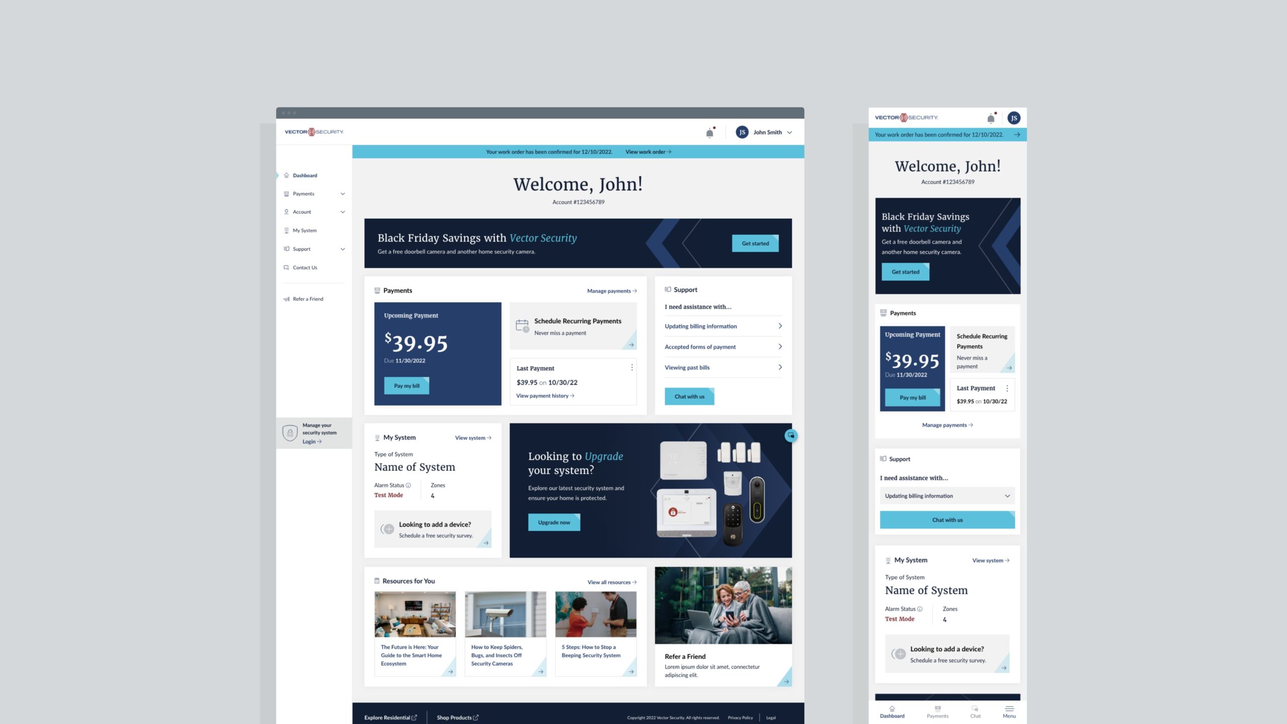 Vector Security was undertaking a complete digital transformation across its website, customer portals, and dealer portals. Our team guided the conceptual phase, evolving the brand and visual system into an industry-leading design framework that supports smooth, intuitive user journeys. By turning business goals into clear features and purposeful functionality, we created a digital experience that feels more human, more confident, and far more efficient for every type of user.
